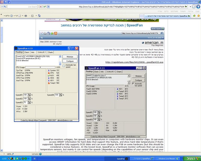 אגב הורדתי תוכנה לבדיקת הטמפרטורה…בצד שמאל התוכנה מופעלת במחשב ומראה נתונים….בצד ימין יש ציור של התוכנה באיזה אתר…