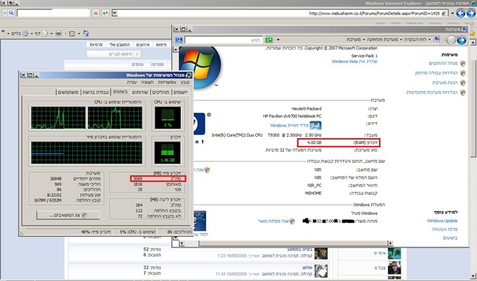 לאחרונה בפורוםהויסטה לא מנצל את מלוא הזיכרון (RAM)