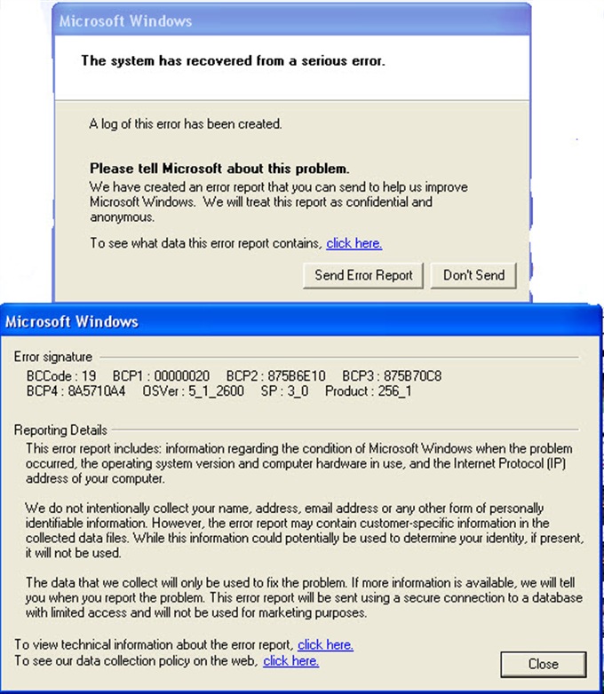 BCCode : 19 BCP1 : 00000020 BCP2 : 875B6E10 BCP3 : 875B70C8