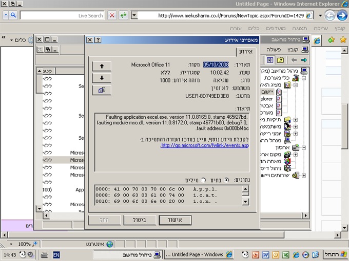 במהלך עבודה באקסל וגם בוורד פתאום המחשב קורס
