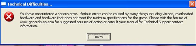 המשחק לא עולה בגלל תקלה חמורה.