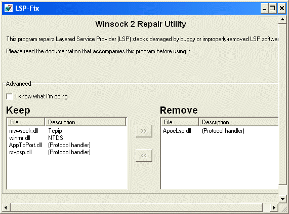 זהו כלי אשר עוזר לצפות בעזרי התקשורת השונים בצורה ידנית על מנת לתקן את פורט 80 (גלישה באינטרנט), הוא מצריך מעט ידע במחשבים ע"מ להשתמש בו בבטחה. נא להשתמש בו רק במקרה שהכלי WinSockFix, לא הצליח לפתור את הבעיה ורק אחרי קריאה של מדריך מפורט לגביו.