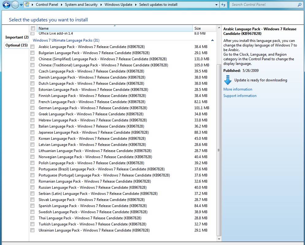 Download Official 32-bit (x86) Windows 7 RTM MUI Language PacksArabic: windows6.1-kb972813-x86-ar-sa_210ccc96338a1ff683803eb4034e5f53d6d54c97.exe